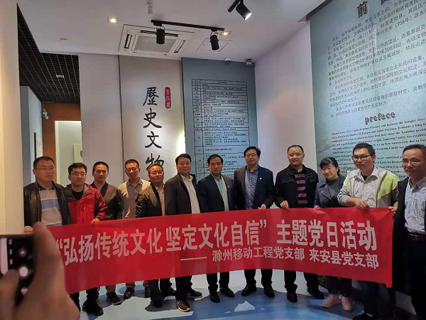 为更好开展“弘扬传统文化,坚定文化自信”主题教育,继承和发扬党的光荣传统和优良作风,提高党员干部的党性修养,2020年11月18号下午,滁州移动工程党支部、来安党支部一行20余人组织全体党员参观来安县博物馆。