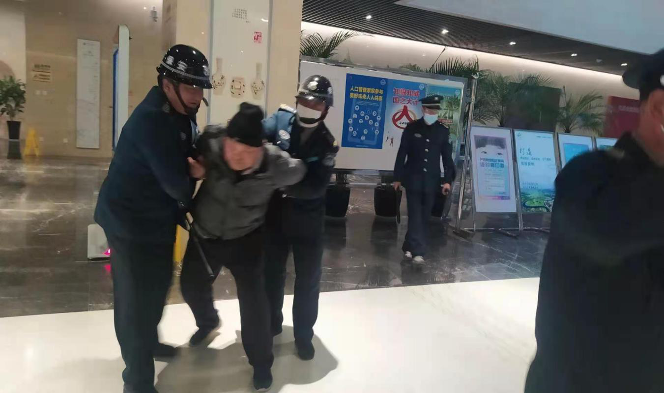 本次演练模拟场景为:一名身份不明的醉酒男子因不按要求戴口罩、扫码、测温,被安保人员拒绝进入场馆后试图行凶的情形。演练中,安保人员在沟通劝阻无效后,合作运用防暴叉、橡皮棍、盾牌等反恐防暴器械迅速将其制服。