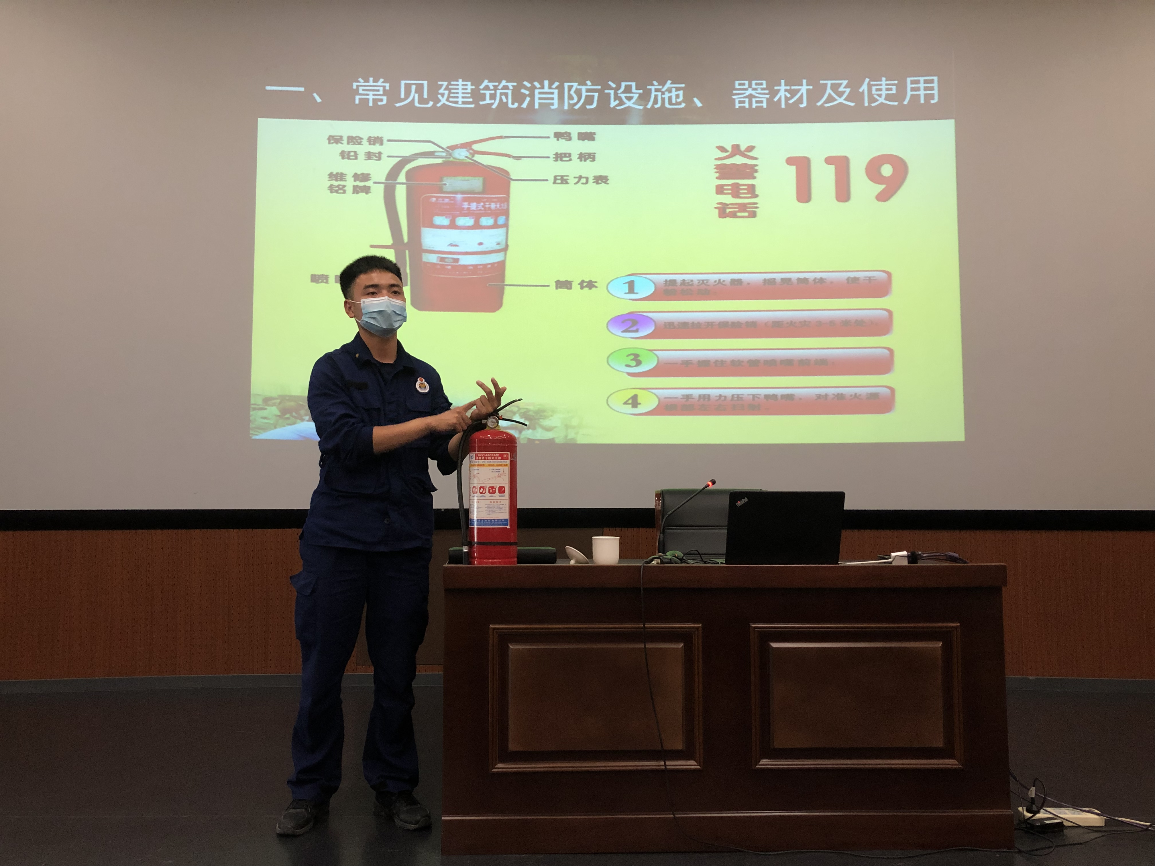 许警官在培训会上讲解了消防相关基础知识,并通过新闻视频、实际案例来解读消防安全隐患及灭火自救的方法。为了让职工更加熟练掌握消防设施和器材的使用,许警官组织职工开展了有关灭火器、消防栓、水袋等如何使用的消防安全演练。
