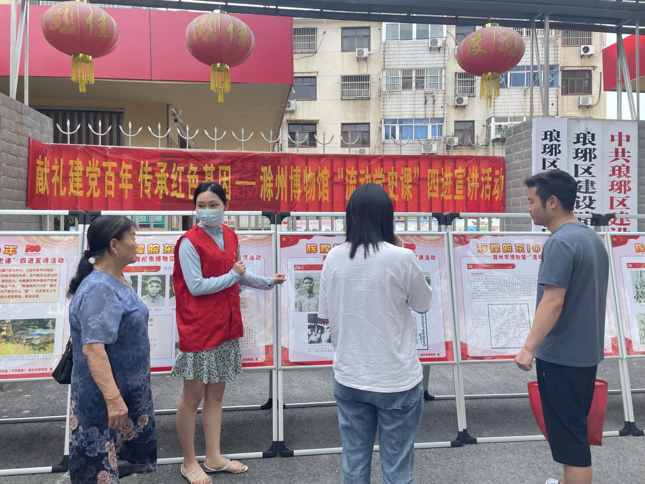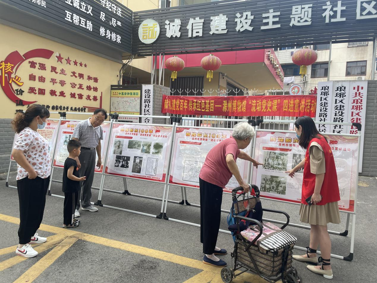 本次展览以滁州历史重大事件为主要线索,清晰展示了100年来在中国共产党领导下滁州不同历史时期取得的成就,给辖区党员和群众在家门口上了一堂生动的党史课。