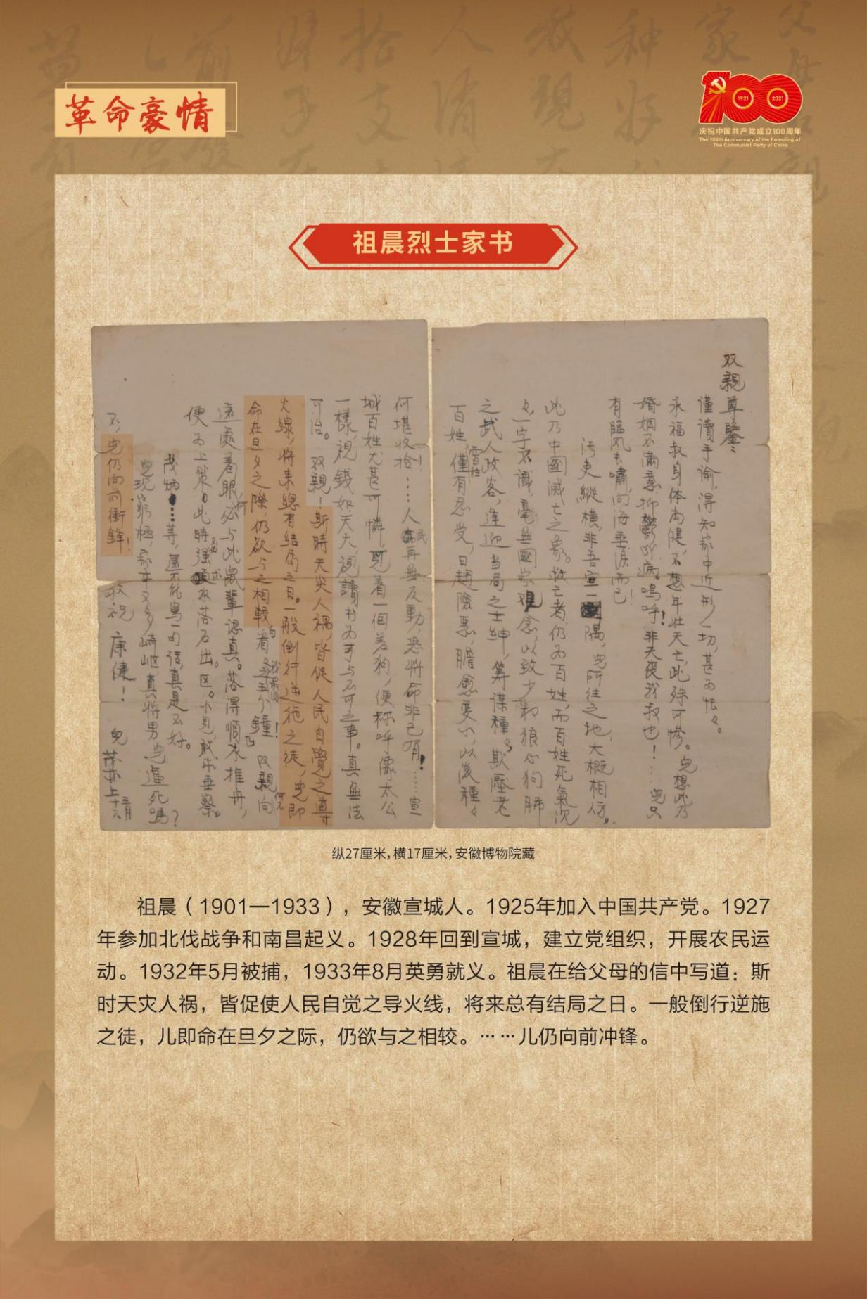本期,让我们一起品读《祖晨烈士家书》