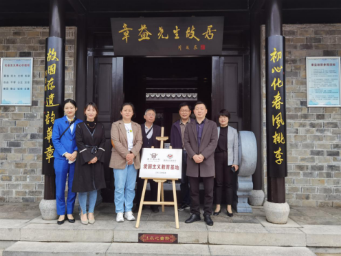 张辉馆长与付俊副校长代表馆校双方签约并揭牌。仪式后,校方一行参观了我馆的文博书苑和章益故居。