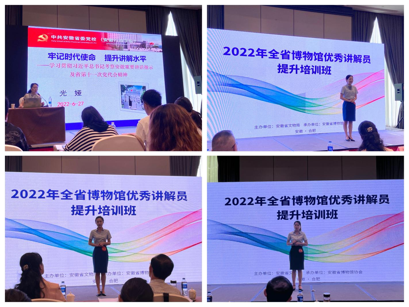 近日,由安徽省文物局主办、安徽省博物馆协会承办,开展了2022年全省博物馆优秀讲解员提升培训班。必威betway精装版app三位优秀讲解员及全省各地70多名优秀讲解员参加了此次培训。