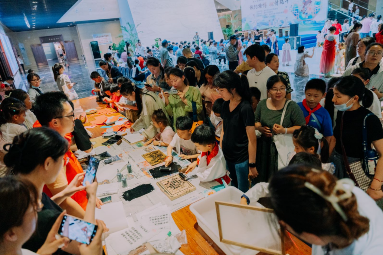 随后孩子们兴趣盎然地参与到“投壶”、“造纸术”、“拓印”等具有民俗特色的非遗项目体验中。