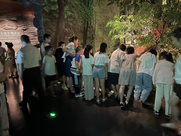 活动中,讲解员老师向大家科普了处暑节气的相关知识以及暑夏时节活跃的昆虫。“为什么斗蟋蟀而不是斗其他昆虫?”“蝴蝶是害虫还是益虫?”“蝴蝶的翅膀都有毒吗?”带着这些问题,讲解员老师结合博物馆自然展厅中的昆虫标本,为大家一一解答。身怀绝技的黄蜻、团粪大师屎壳郎、国宝级的中华虎凤蝶、梁祝丝带凤蝶以及蝶中仙子冰清绢蝶等等,孩子们听得饶有兴趣,感受到昆虫多样性的奇妙。随后,来到昆虫展柜前,大家近距离观察这些标本,并通过游戏“说出它的名字”加深了印象,还得到了小奖品昆虫琥珀。最后手工环节,孩子们展开想象力,用颜料画出一个个形态各异的森林背景,固定好再点缀上各种昆虫,一个立体昆虫博物馆作品就完成了。