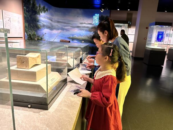 活动分为“展厅寻宝”、“宝物分享”和“积分换宝”三个环节。讲解员老师特制了一张张文物卡片,每位同学领取三张,在博物馆不同展厅找到对应文物,记录下文物的名称、年代、出土地点等相关信息。老师根据他们对藏品解读的完整性,给与对应的积分。再次领取卡片,寻找、记录、兑分,如此循环。在寻宝的过程中,同学们也增进了对博物馆文物的了解,切身感受到博物馆的魅力和深度。