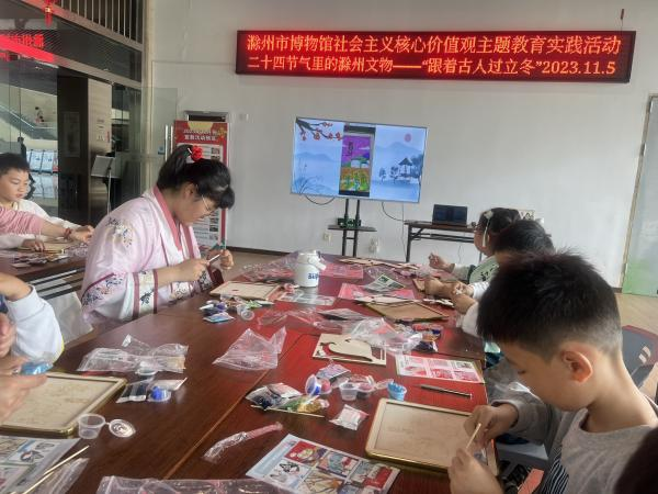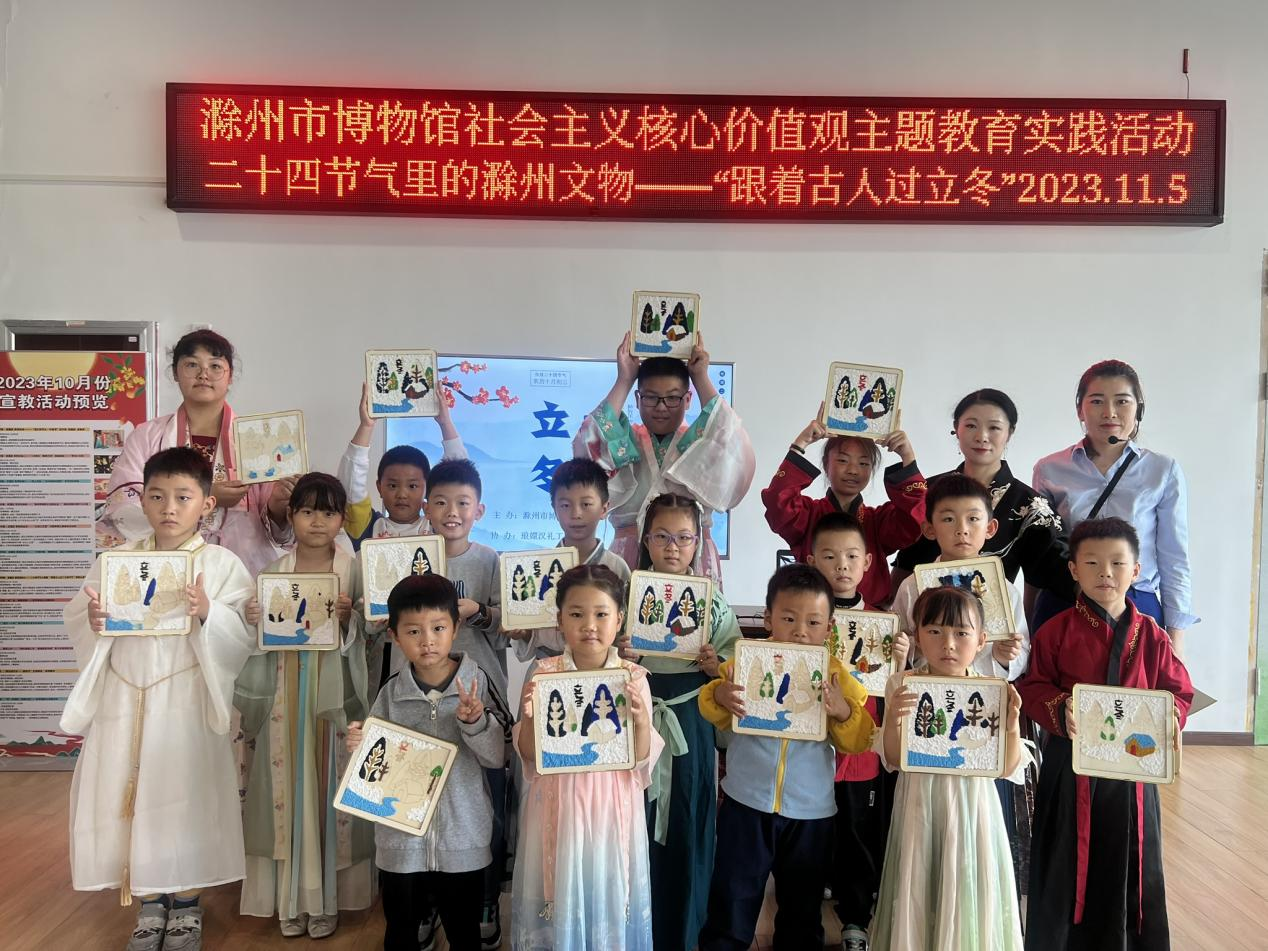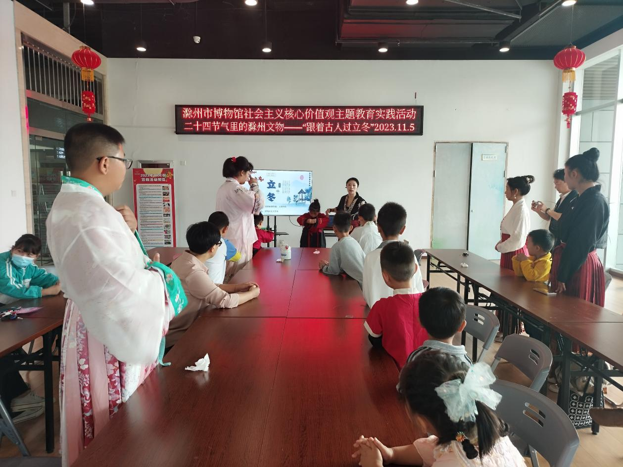 为了丰富青少年儿童的文化生活,弘扬中华优秀传统文化,在二十四节气——立冬来临之际,11月5日上午,必威betway精装版app联合琅嬛汉礼工作室开展了二十四节气里的滁州文物——“跟着古人过立冬”主题活动。