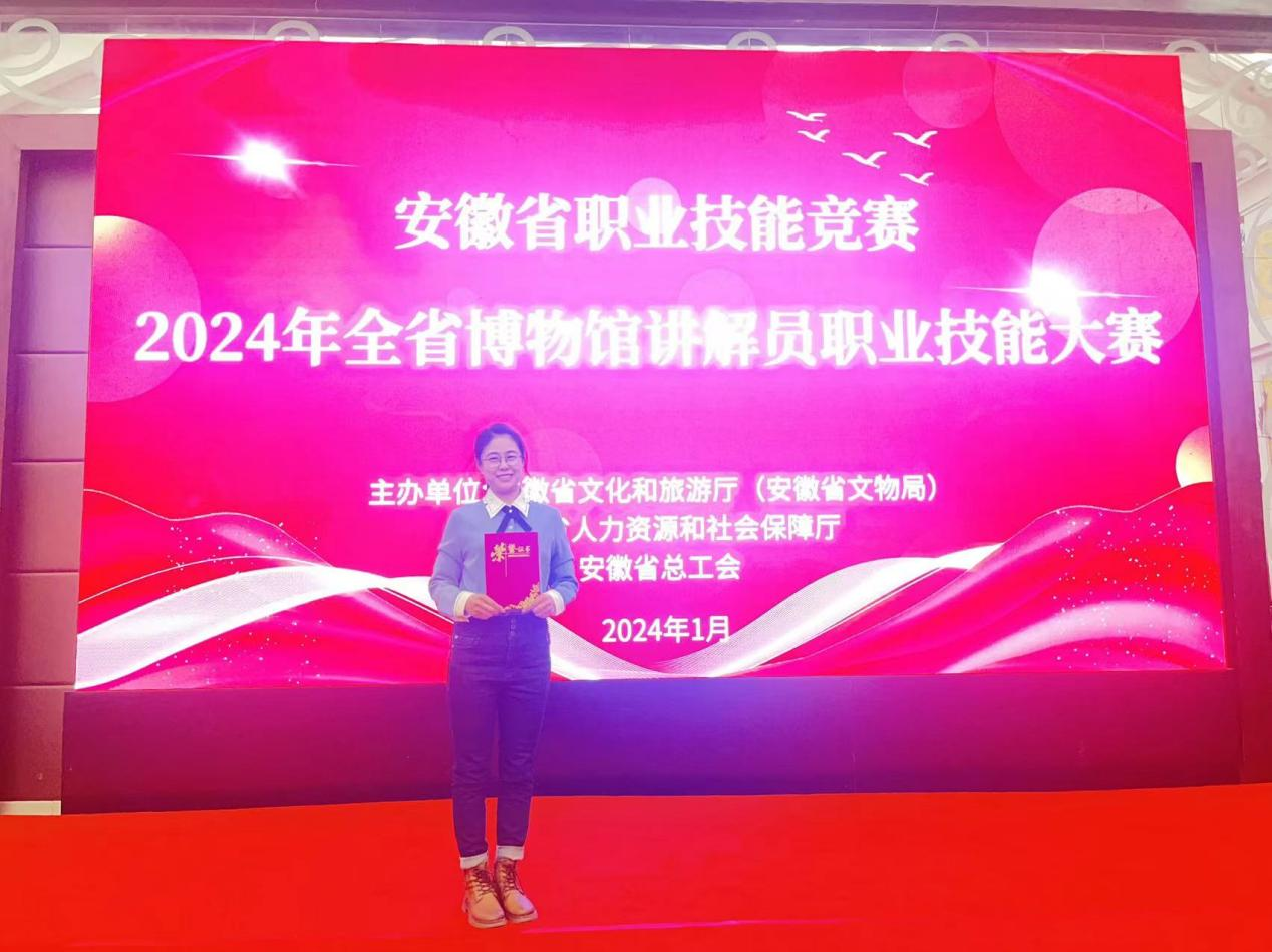 1月8日-10日,由安徽省文化和旅游厅(安徽省文物局)、安徽省人力资源和保障厅、安徽省总工会共同主办的安徽省职业技能竞赛——2024年全省博物馆讲解员职业技能大赛在合肥举办。必威betway精装版app志愿者讲解员陈蕾获得志愿组三等奖。