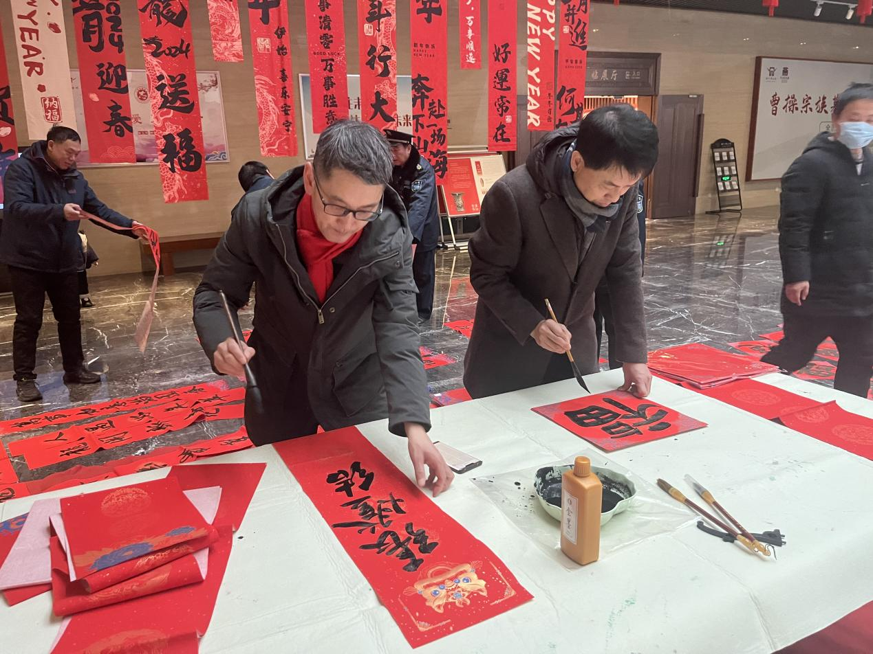 活动现场,书法家们挥毫泼墨,一起一落间,一幅幅苍劲有力、满载祝福的春联跃然纸上,一排排墨香浓郁,祝福满满的春联和“福”字,深受大家喜爱。红红火火的对联让大家感受到浓浓的年味,此次活动进一步拉近了博物馆与居民之间的距离,增加了居民的幸福感和获得感。