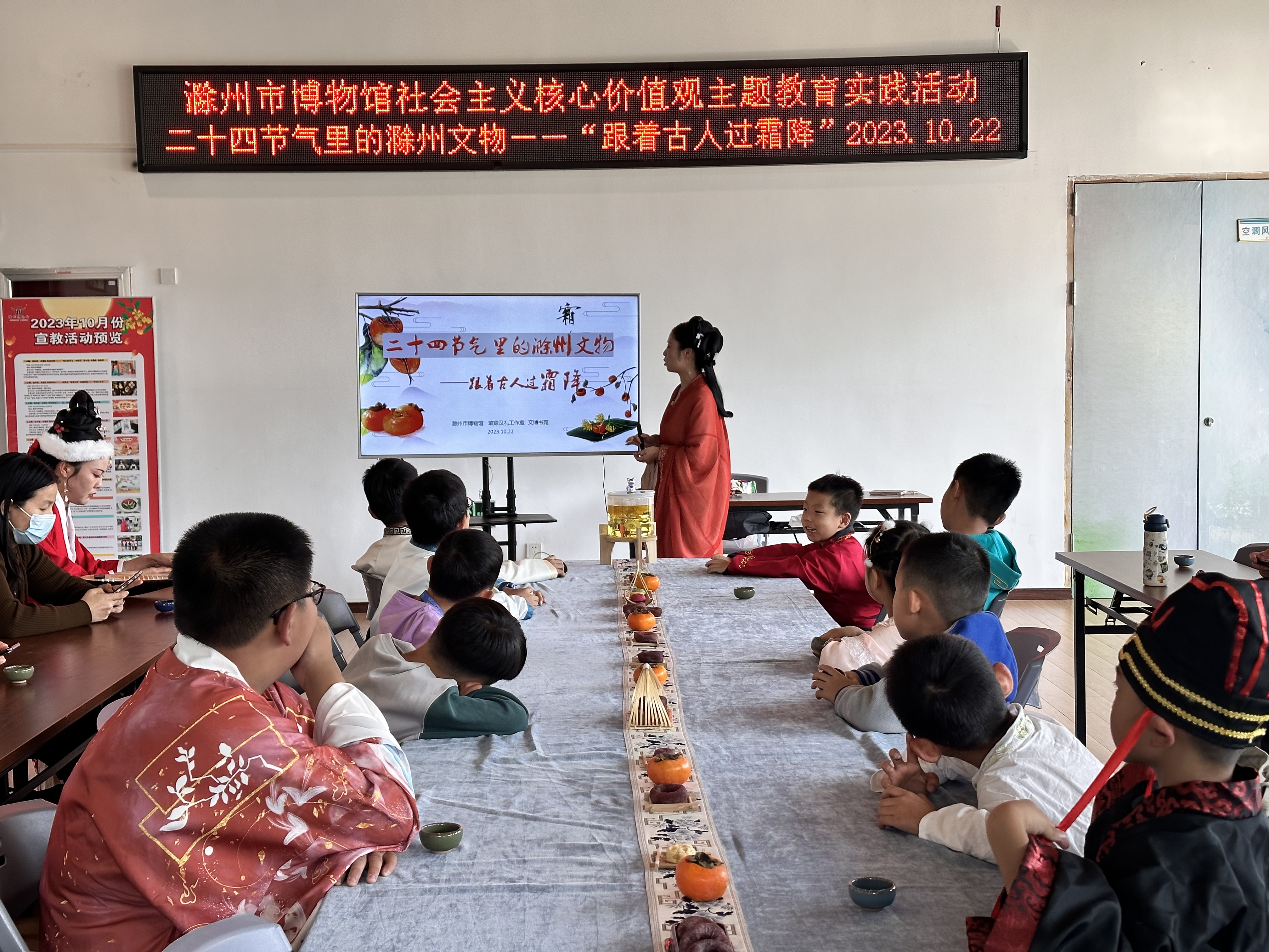一是我馆开展“我们的节日”、“二十四节气”、“dzvkj小课堂”等系列社会教育活动70场,线上活动17场。暑期,我馆举办第六届暑期“小小讲解员”研学夏令营,研学活动设置了馆内授课、户外研学、非遗体验、结业汇报等项目,今年研学活动首次与其他场馆合作,组织学员走进安徽金丝楠木博物馆、全椒吴敬梓纪念馆等地进行研学,极大丰富了课程体验,让学员乐学其中。
