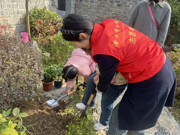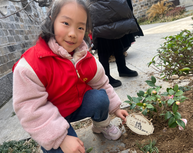 活动现场,讲解员首先带孩子们参观了章益故居,借着植树节,讲解员老师带孩子们认识了故居里常见的花草树木,随后孩子们迅速投入到活动中,挥锹铲土、踩实新土、堆起围堰、提桶浇水……与爸爸妈妈合力栽下了一株株树苗。