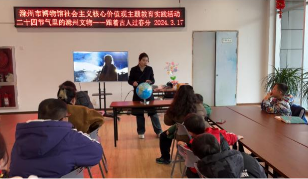 千花百卉争明媚,又见春分好时光。春分,是二十四节气中的第四个节气。这天昼夜长短平均,正当春季九十日之半,故称“春分”。为了让青少年儿童了解中国传统节气文化,感受春天里的喜悦,3月17日下午必威betway精装版app开展了二十四节气里的滁州文物——“跟着古人过春分”活动。
