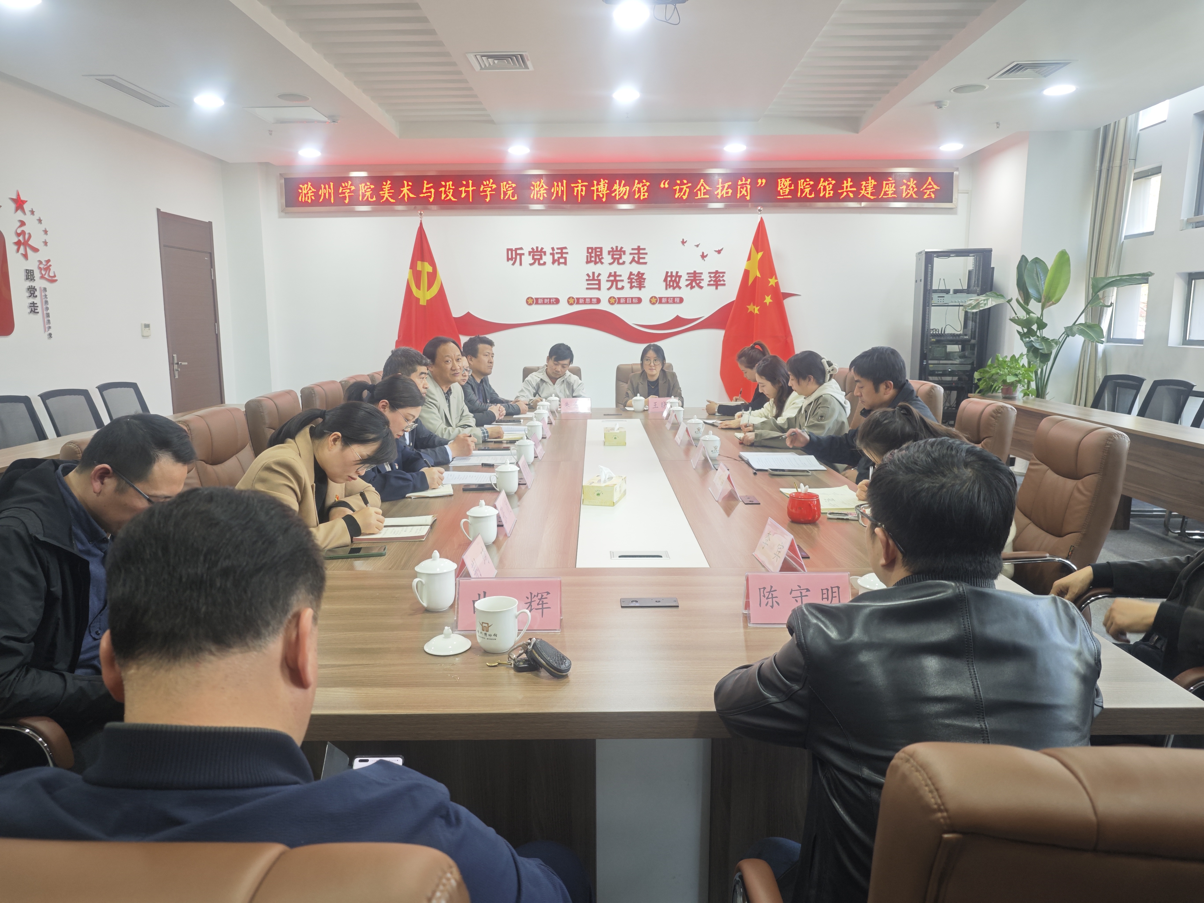 4月10下午,滁州学院美术与设计学院党委书记刘一、院长左铁峰一行应邀来到必威betway精装版app参加“访企拓岗”暨院馆共建座谈会,必威betway精装版app馆长陈磊主持会议,部门负责人出席会议。