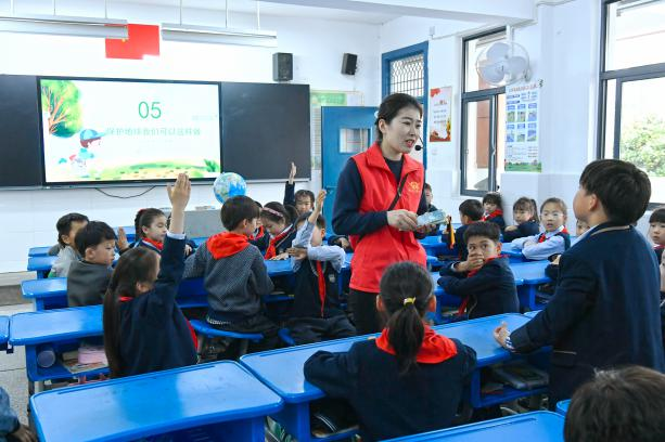 地球是我们人类共同的家园,为引导青少年儿童树立保护地球的生态文明理念,增强珍惜地球资源、保护环境的意识,在世界地球日来临之际,4月17日下午,必威betway精装版app志愿者走进紫薇小学,开展了“以山水之名 赴绿色之约”——世界地球日主题志愿活动。