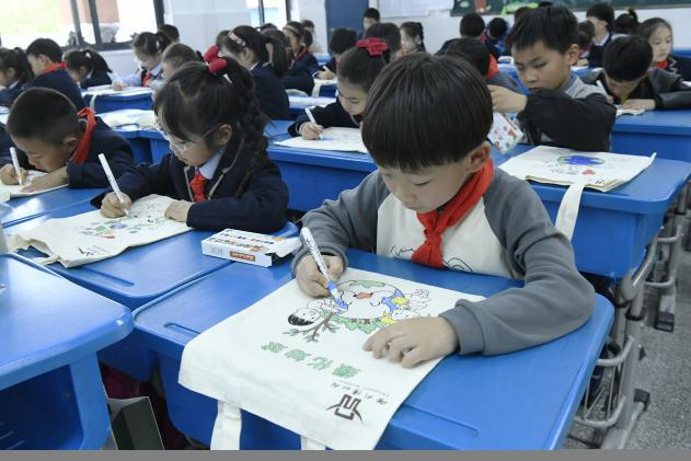 循环利用是减少污染的重要方式,志愿者借此向孩子们介绍博物馆里一件高效节能的文物——汉铜甗,详细说明了它的结构、性能及巧妙设计,了解千年前古人对于资源循环使用的意识。最后手工环节绘制环保帆布包,大家用色彩点缀创意,用想象绘制作品,DIY属于自己的帆布包。“我要用帆布包代替塑料袋。”孩子们纷纷争做“环保达人”。