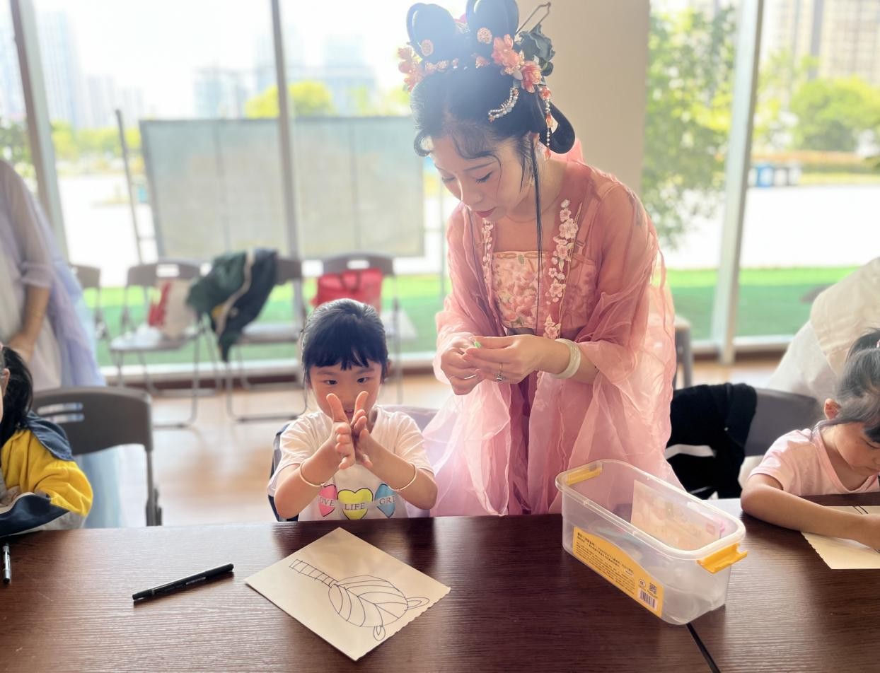 最后做手工环节,在老师的示范带领下,孩子们分为两组制作手工,第一组孩子们用画纸及黏土动手制作出一幅精美的扇子创意画,第二组孩子们用陶泥制作出一个个精美的陶艺作品。