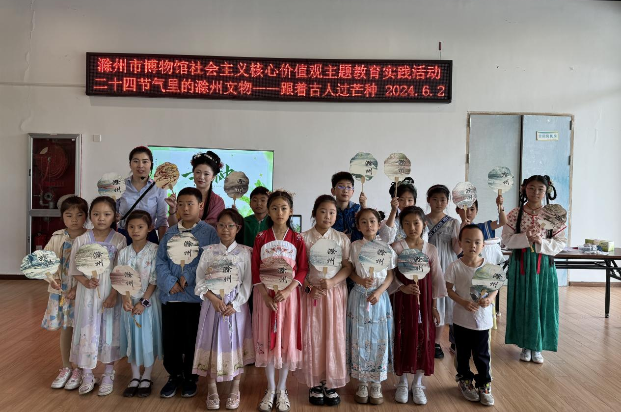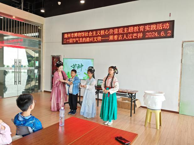 芒种,是二十四节气中的第九个节气。《月令七十二候集解》:“五月节,谓有芒之种谷可稼种矣。”春争日,夏争时,“争时”即指这个时节的收种农忙。为了让青少年儿童了解中国传统节气文化,6月2日上午,必威betway精装版app联合琅嬛汉礼工作室开展了二十四节气里的滁州文物——“跟着古人过芒种”活动。