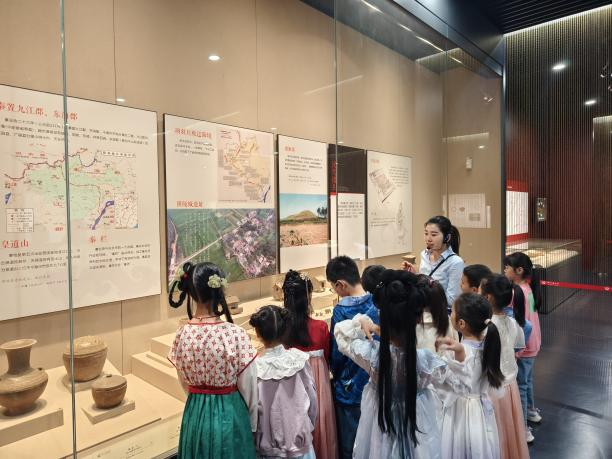 许薇老师通过课件向大家普及芒种节气的由来、含义、三候等知识,并重点介绍芒种时节煮梅汤、送花神、打泥巴仗等有趣的习俗,引导同学们通过学习芒种节气,从中感受农民伯伯劳作的辛苦和粮食的珍贵。随后由博物馆讲解员带领大家进入二楼参观历史展厅中的文物——陶仓,向大家详细介绍了陶仓的年代、用途以及汉代墓葬风格和墓室结构,让大家对封建社会第一个鼎盛王朝——汉代有了进一步的了解。
