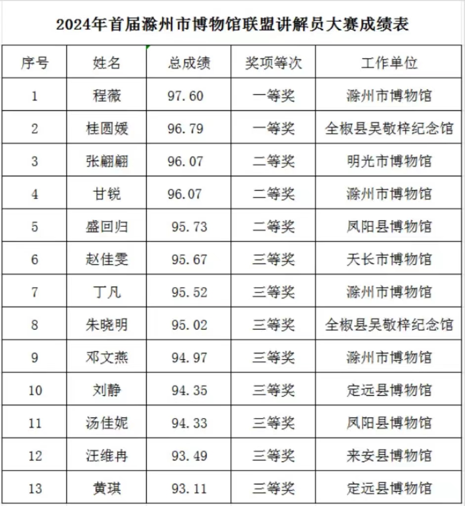 本次大赛以赛促训,是滁州优秀博物馆讲解员集中展示的平台,也是一次大比武、大练兵的机会。他们将以良好的职业素养、扎实的业务水平和奋发有为的时代精神,继续讲好滁州故事,展现“醉美滁州”的靓丽风采。