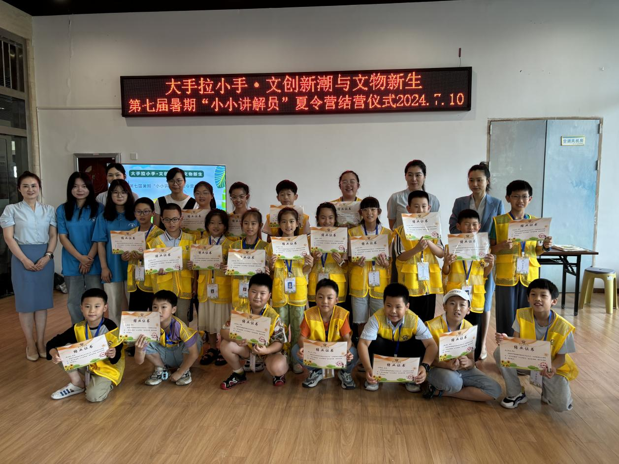 7月10日,本届暑期“小小讲解员”夏令营社会实践活动圆满结束。在结业考核中,小小讲解员们用稚嫩的童声、饱满的热情、标准的礼仪和规范的语言细致讲述了精品文物及其背后的故事,为自己五天来的学习之旅交出了一份满意的答卷。21名小学员顺利通过考核并结业,获得了此次暑期“小小讲解员”夏令营的结业证书。必威betway精装版app和滁州学院美术与设计学院的指导老师参加了本期培训班的结业仪式,并向顺利通过考核的各位学员表示祝贺。