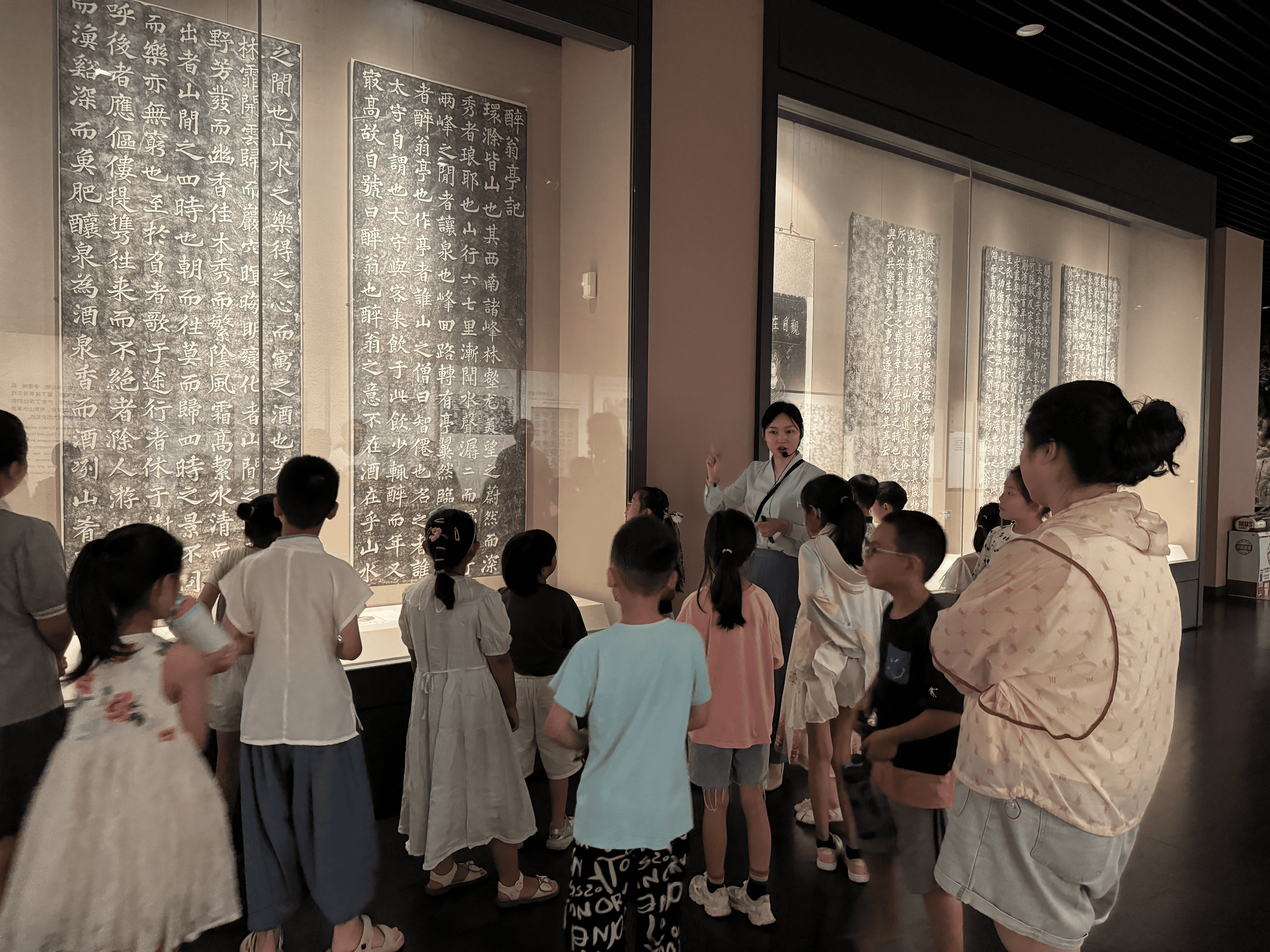 活动开始,讲解员向小朋友们介绍了大暑的由来、气候特征及在大暑节气吃荔枝斗蟋蟀等习俗;紧接着带大家走进必威betway精装版app二楼历史展厅,了解了文物《欧文苏字碑》拓片,给大家讲解了《欧文苏字碑》的历史背景。