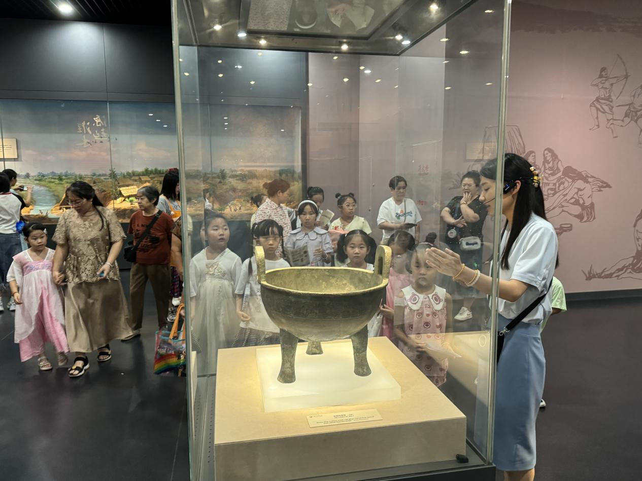 活动开始,讲解员首先带领大家参观了一楼自然展厅和二楼历史展厅,小朋友们一边认真聆听讲解员讲述每件文物背后的故事,一边用心观察文物精美奇特的造型。