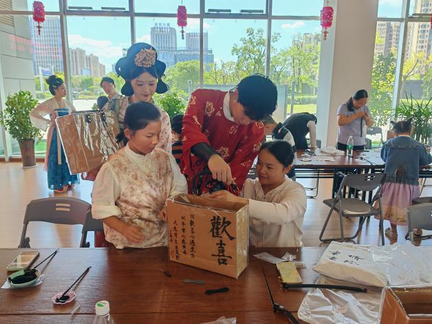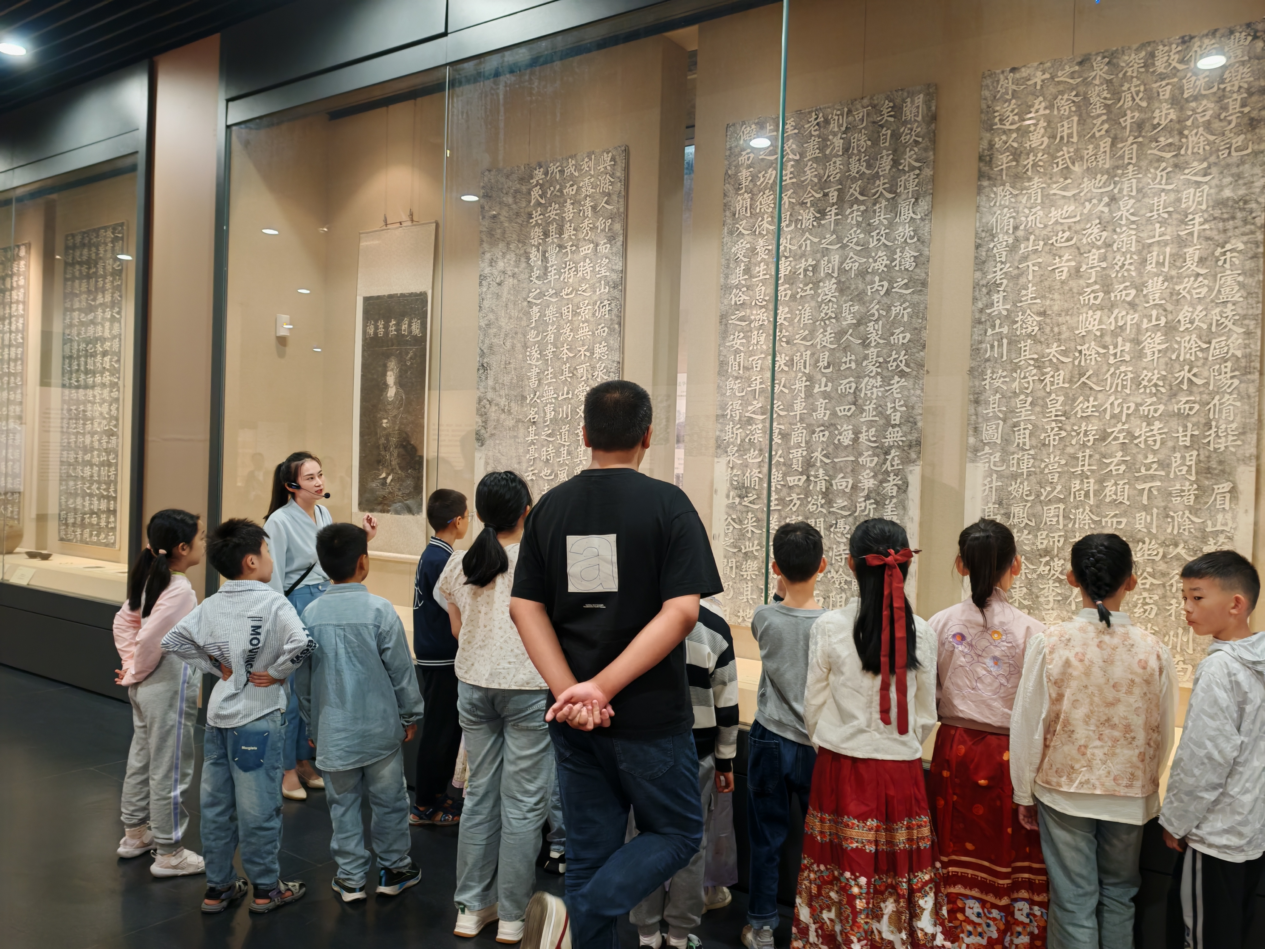 活动中,汉服社老师通过“秋分”节气主题文博课堂的形式,向孩子们介绍了二十四节气的由来、具体含义及传统习俗,并带领孩子们一起诵读《二十四节气歌》,让孩子们走近节气、了解节气,让中华优秀传统文化代代传承、浸润心灵,同时博物馆讲解员带领大家到二楼历史展厅讲述了《丰乐亭记》拓片,了解到欧文苏自碑的由来。