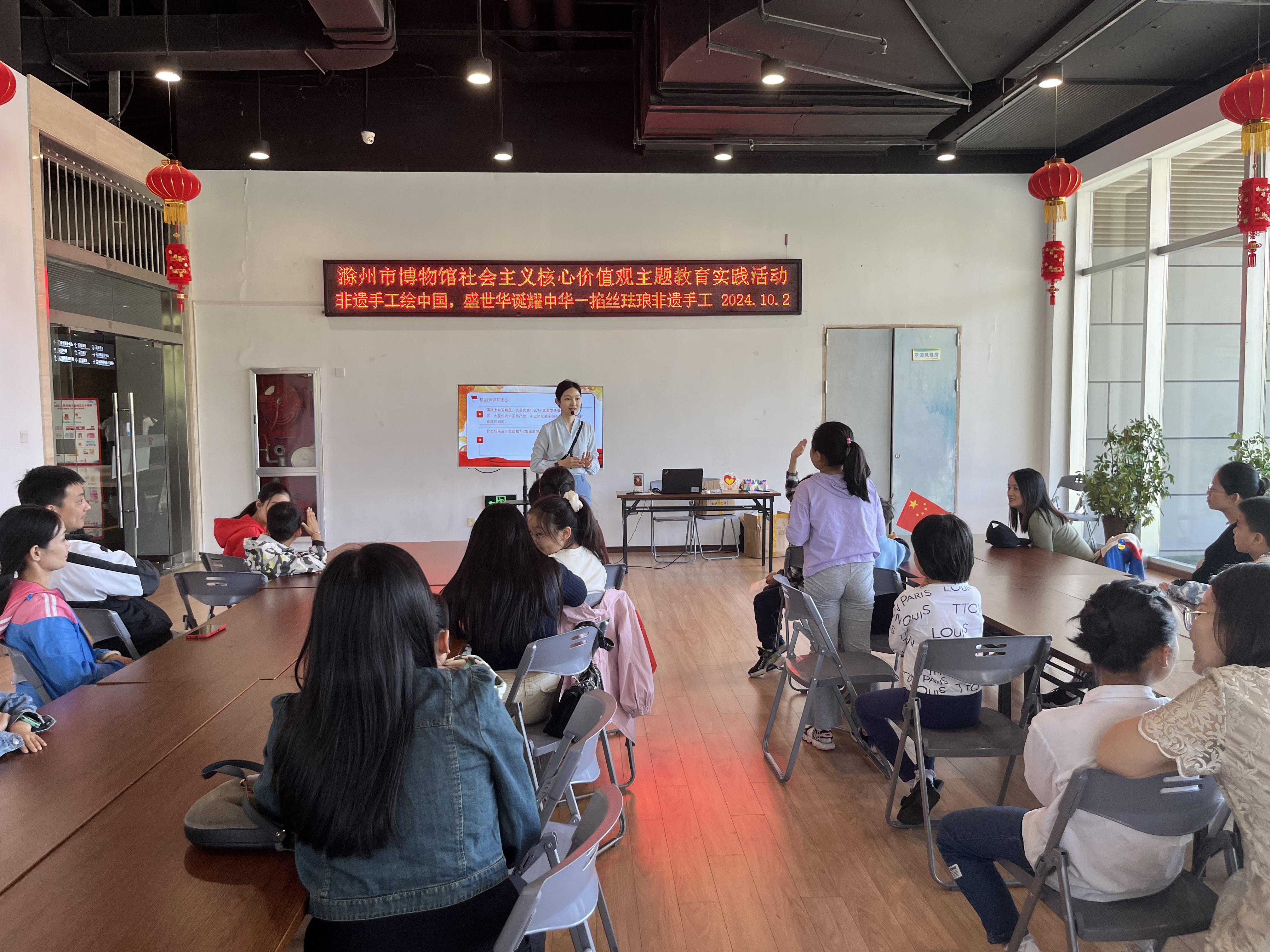 掐丝珐琅是一项具有悠久历史的中国传统工艺!为丰富青少年国庆假期生活,近距离感受中华优秀传统文化的魅力,滁州市文旅局关工委联合必威betway精装版app在10月2日上午特举办“非遗手工绘中国,盛世华诞耀中华”----掐丝珐琅非遗主题活动,带领大家走进精彩纷呈的掐丝珐琅画世界,品味金丝古韵,领略非遗之美。