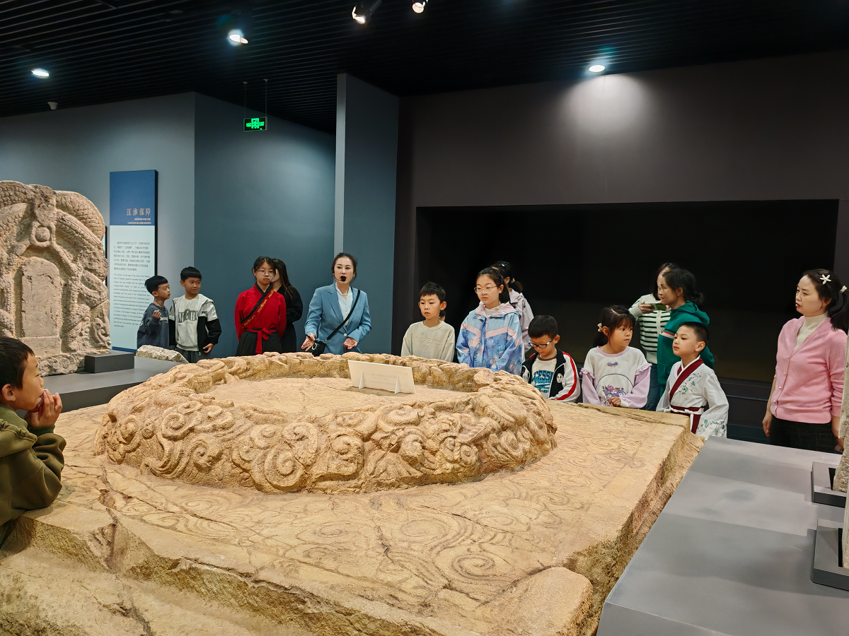活动中,许薇老师通过图文结合的形式将霜降的节气习俗与养生知识介绍给孩子们,让孩子们更加了解大自然,热爱大自然;随后,博物馆讲解员带领大家到二楼历史展厅,讲解了明中都蟠龙石础,了解到为何称作中华第一“础”。
