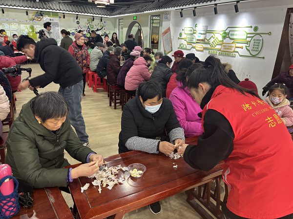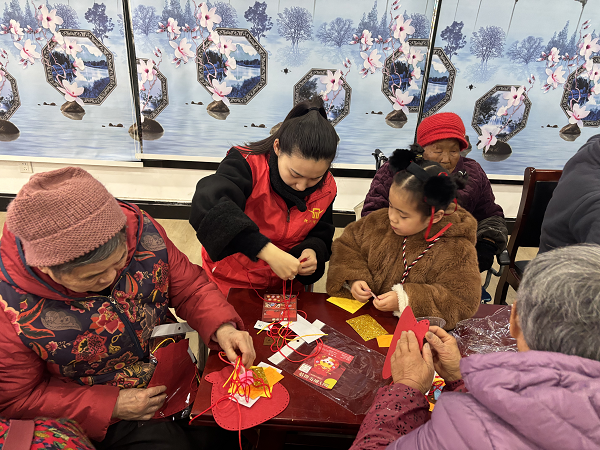 制作完腊八蒜,志愿者们给居民们发放了福袋的材料包,大家欢声笑语动手制作“新年福袋”,迎接即将到来的新年。最后,美味的腊八粥也煮好了,居民们接过热腾腾、香喷喷的粥,迫不及待地尝起来,甜甜的腊八粥加上甜甜的笑容,现场充满欢声笑语。