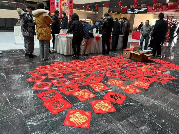 与此同时,在一楼大厅,我馆联合华为公司开展的拓印福字活动也在热闹的氛围中同步进行。我馆还有幸请来省内知名书法家和书法爱好者现场为游客书写春联,送去新春的祝福。