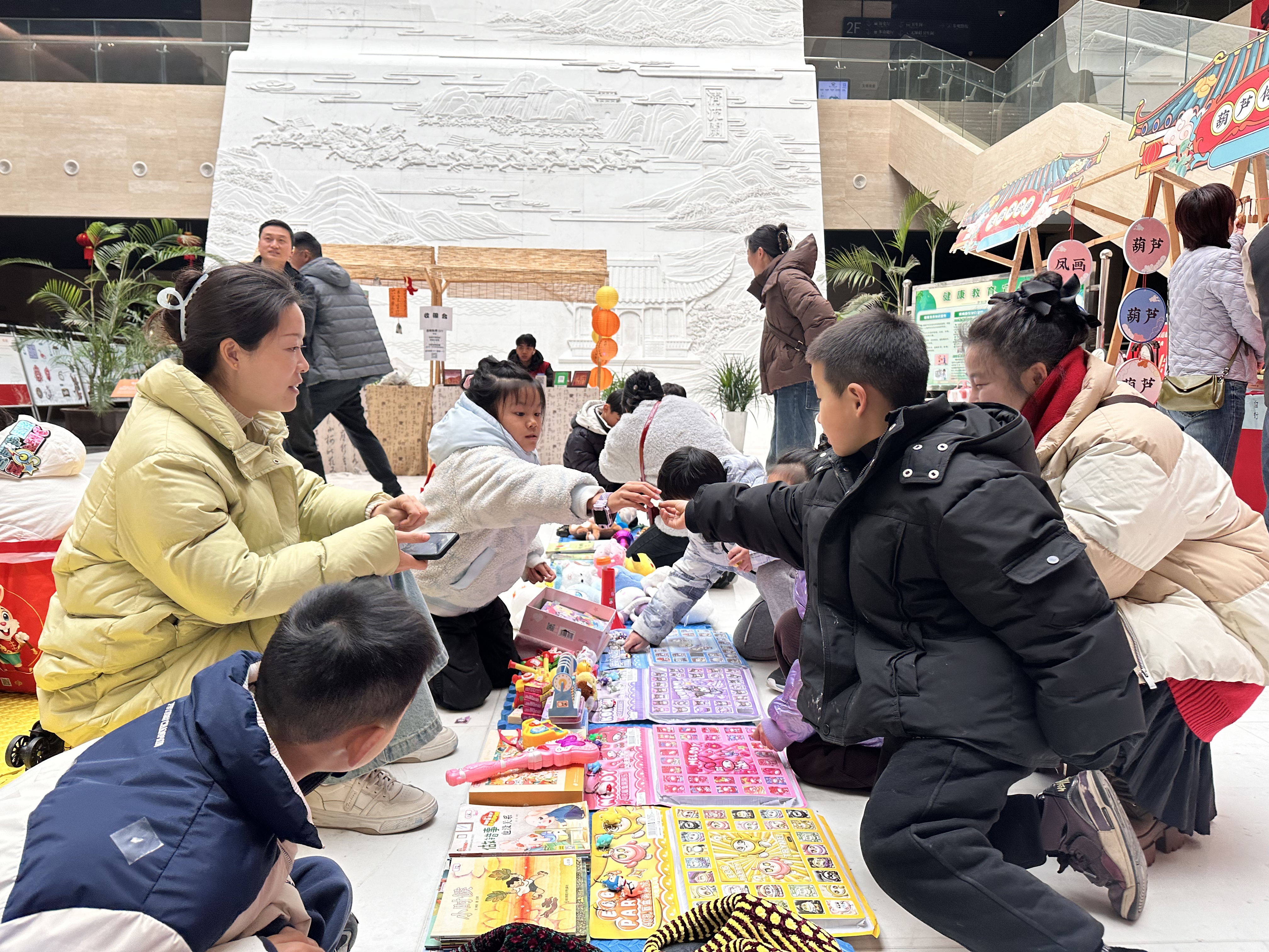 活动现场,摊位上的商品琳琅满目,涵盖了书籍、文具、玩具、手工艺品等各类物品,摊主们精心设计了招牌和宣传标语,吸引着来往的顾客。每个摊位前都挤满了前来选购商品的游客,大家穿梭在各个摊位之间,仔细挑选着自己心仪的物品,他们与摊主们讨价还价,气氛十分融洽,一些热门摊位前更是排起了长队,摊主们忙得不亦乐乎。