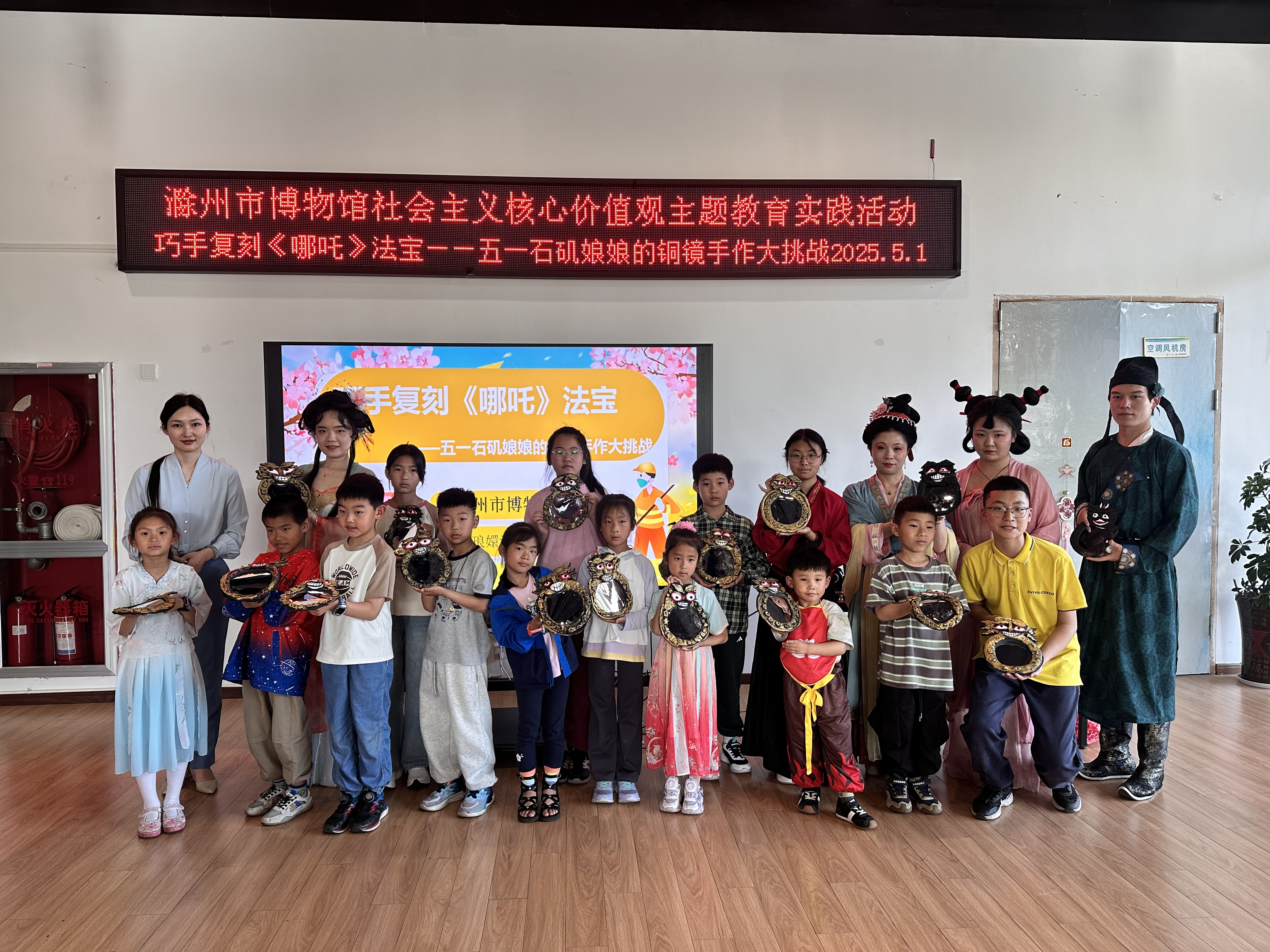 5月1日下午,“巧手复刻《哪吒》法宝——石矶娘娘的铜镜手作大挑战”活动现场人气爆棚。孩子们在社教老师指导下,用黏土与金色颜料制作青铜镜纹饰,结合《哪吒之魔童闹海》故事解读文物背后的神话密码,亲手打造“石矶娘娘同款”铜镜文创。家长李女士感叹:“孩子一边做手工一边学历史,比课本更生动!”