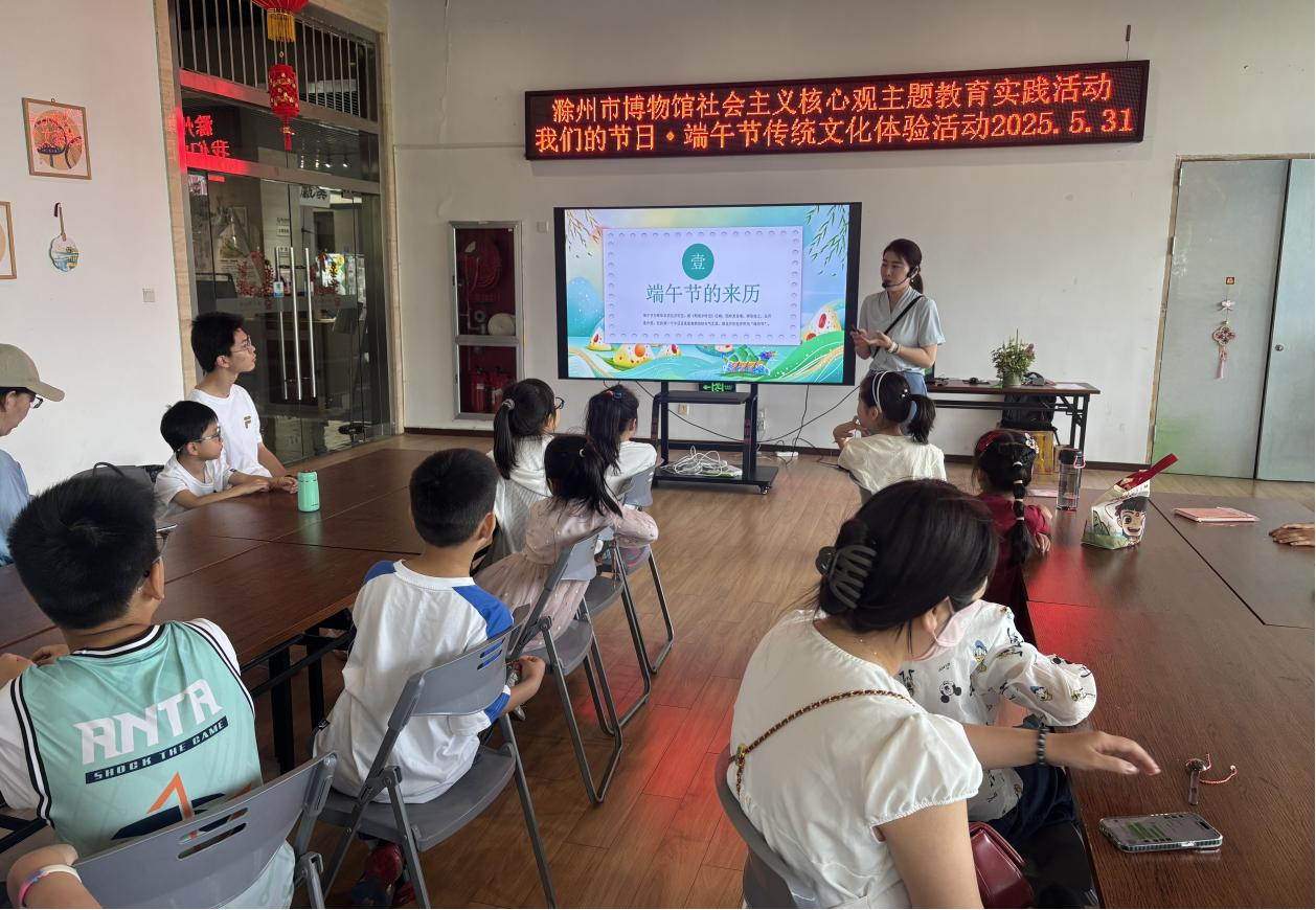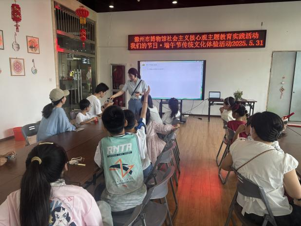 活动中,讲解员化身文化使者,以生动有趣的讲解,向大家详细介绍端午节的由来和习俗。从屈原投江的悲壮传说,到赛龙舟、吃粽子、挂艾草等传统习俗,一个个精彩故事与文化符号,让孩子们对端午节的历史渊源和文化内涵有了更深刻的认识。