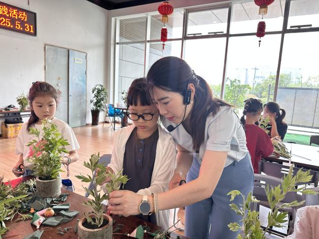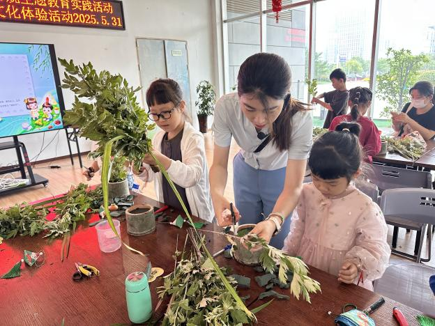 端午佳节,艾草飘香。在传统习俗中,艾草不仅是驱邪避瘟的象征,更承载着人们对安康生活的美好祈愿。手工体验环节以“艾草”为主题,孩子们在讲解员的帮助下,修剪艾草枝叶,巧妙搭配装饰材料,将普通的艾草制作成精致的艾草花篮,让端午的独特韵味在创意与巧思中绽放。