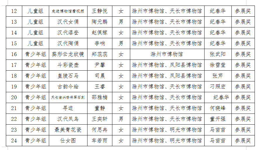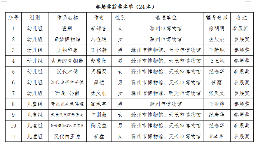 附件:2024年“我在博物馆画文物”安徽省青少年绘画大展获奖名单