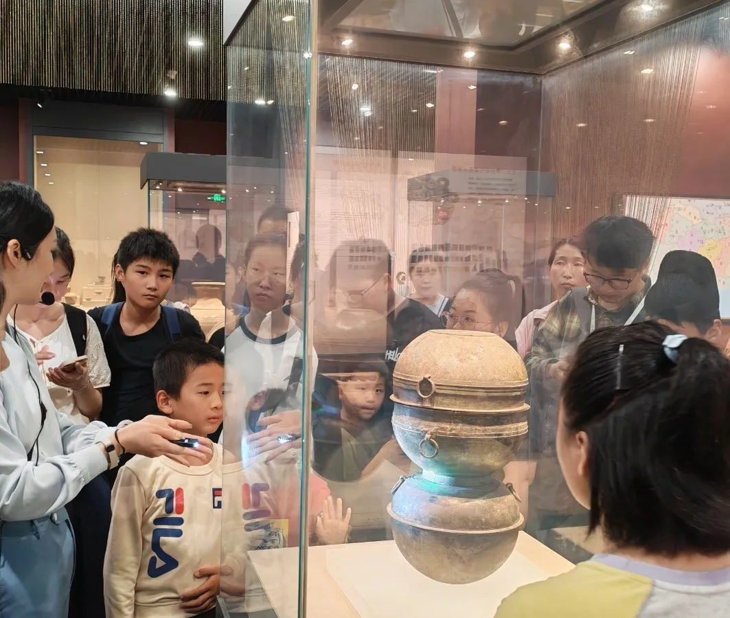 手里攥着线索卡,每到一个展柜都认真比对!听着讲解,看着“文物剪影”下面的提示,在互动游戏中就把滁州历史记在脑海里,原来寻宝不只是找东西,是跟着线索读懂滁州故事啊!