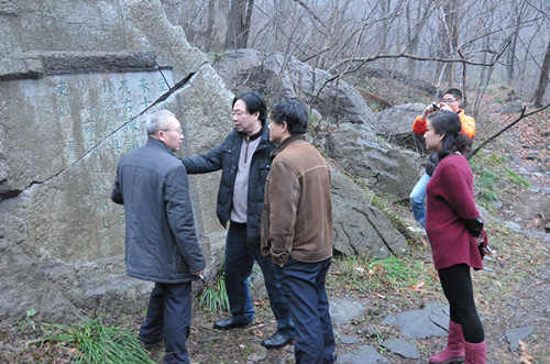专家们在琅琊山风景区文物局、市文物所同志的陪同下踏勘宋代摩崖石碑