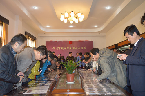11月14日,由滁州市钱币学会主办,中国人民银行天长市支行、天长市博物馆协办的《滁州市钱币学会藏品交流展》在天长市博物馆展出。会员们将数千枚钱币藏品,系统地分为“古代货币系列”、“近代机制银元系列”、“边区钱币及现代纸币”、“新中国贵金属纪念币”等几大板块进行展出、交流。此次展览为藏友们搭建了相互学习,共同提高的平台。