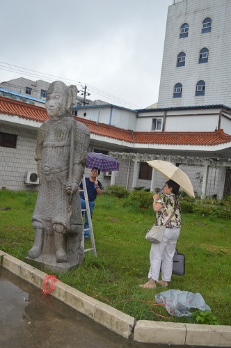 为加强文物保护,打击文物犯罪,受公安机关聘请,安徽省文物鉴定站专家一行5人,于6月30日来到天长市,对5.17案件中追回的杨捷将军墓武官石像生进行鉴定。专家认为:该石像生为省级文物保护单位文物,来源清楚,体量巨大,雕刻精美,时代特征显著,具有较高的历史和艺术价值。