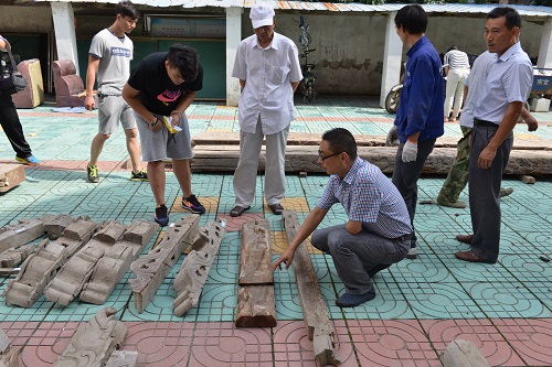 7月12日上午,市文广新局文物科、市文物所、琅琊区文物局组织人员力量,对滁州市一小保存的关岳庙建筑构件进行搬迁保护。