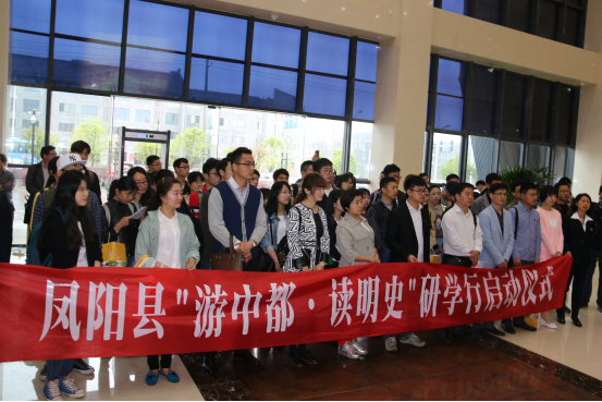 4月16日上午10点30分,由凤阳县委宣传部长陈开广致欢迎词,凤阳县委副书记、县长徐广友和县文广新局局长王启虎相继发表讲话,对凤阳文化产业发展情况作了介绍,紧接着由南京大学学生代表作了参与活动心得讲话,最后,陈开广部长宣布“游中都、读明史”研学行活动正式启动,随后各界代表参观了凤阳县博物馆。
