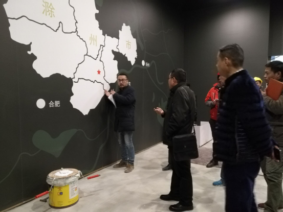 12月16日上午,在滁州市文广新局副局长贾鸿彬的组织下,滁州市重点局、必威betway精装版app、安徽省监理公司负责人,以及天图公司设计人员和施工人员一起,从一楼中庭开始,逐一检查博物馆各部分的装修情况,并再次强调每个部分的工程完成进度。对于检查中发现的地砖铺设不平整、消防设施掩盖、展厅背景色差、背景布粘贴不平整等问题,检察人员都在现场进行研究,形成初步解决方案,责成相关负责人落实。