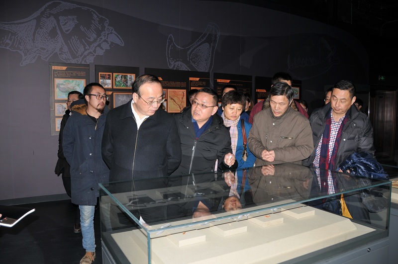 张祥安市长在观看古生物厅动物标本