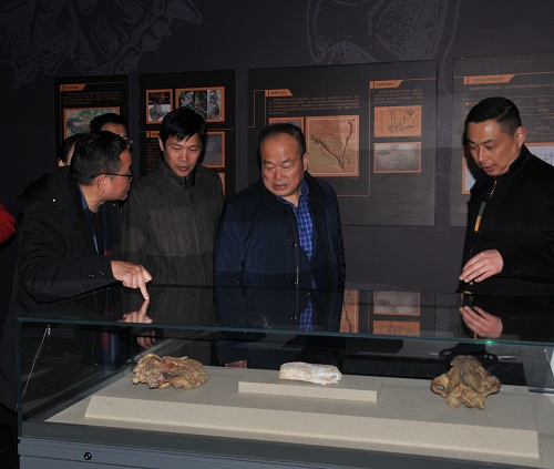 2017年2月6日上午,滁州市委常委、宣传部长李树到市博物馆考察第一阶段展陈工作,文广新局局长杨成志、副局长贾鸿彬、馆长张辉、副馆长陈磊全程陪同,李树部长一行先后参观了博物馆一楼自然展厅和二楼历史展厅的第1、2单元,贾鸿彬副局长为李树部长详细汇报了博物馆第一阶段展陈工作,李树部长对博物馆现阶段展陈工作给予了充分肯定,并希望博物馆在下一步工作中做精做细。