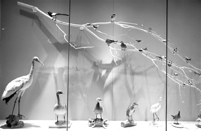 滁州博物馆一楼自然风物陈列厅内展示的动物标本。