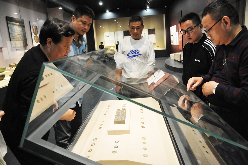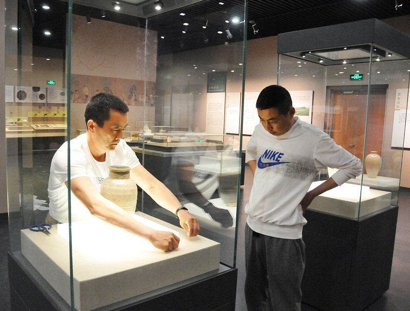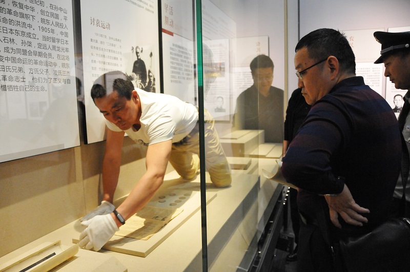 布展开始之前,文广新局副局长贾鸿彬在博物馆会议室主持召开了全体员工动员会,张辉馆长分配了此次布展工作任务,明确到人,责任到人,布展工作共分为两个小组进行。章望南馆长提出了一些具体要求,比如标注好借展文物,不能与馆藏文物混淆;展品局部艺术性的衬托;展托的设计和调整等,最后强调布展工作一定要认真、负责、细致,确保文物安全万无一失。