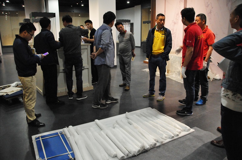 经过前期的充分准备,5月10日滁州博物馆工作人员在警车的押运下成功将上展文物从安徽博物院运回滁州博物馆库房。安徽博物院主创人员一同抵达滁州博物馆,随即与馆内工作人员一起投入到紧张有序的布展中,于5月11日将此次借展文物全部上展完毕。