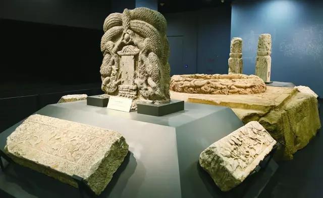 这一组明中都城石构件包括龙纹护栏、凤纹护栏、碑帽等,皆雕工古朴精美,凸显帝王之风,上雕有精美的凤凰、盘龙、牡丹等纹饰,碑帽上刻着“当今皇帝万万岁”的字样,碑帽后刻有文字。所有雕刻都极具匠心,凸显帝王之风,是研究明代石刻艺术和帝王文化珍贵的实物资料。