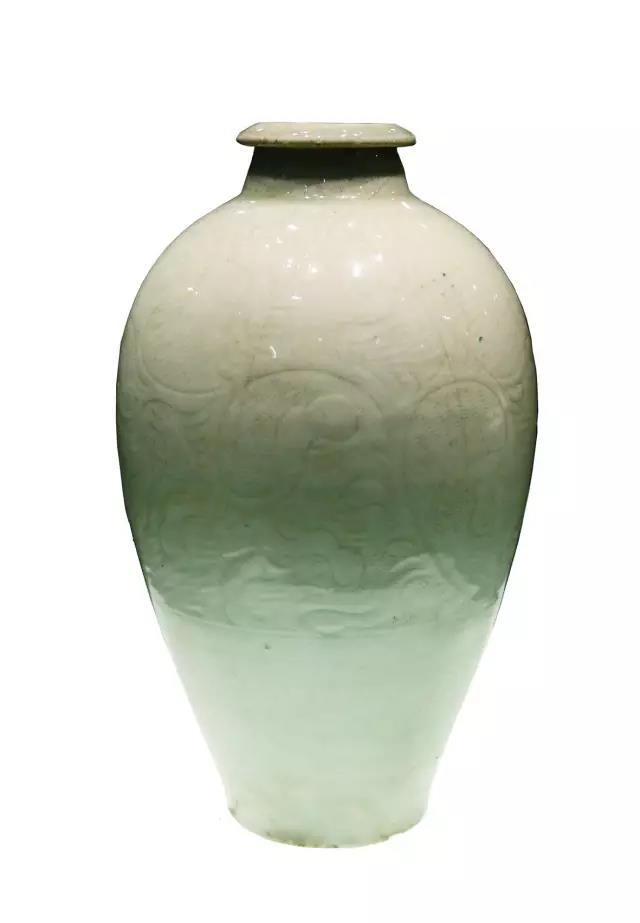 此瓶为我馆藏一级文物,1990年出土于嘉山县(今明光市)张八岭乡。口径5.2厘米,底径8.0厘米,高27.0厘米,重1160克。唇口,细颈,丰肩鼓腹,圈足,造型秀丽挺拔,肩下及腹部有两道弦纹,两弦纹间划有缠枝花卉纹,并辅以篦点纹,通体施以青白釉,晶莹丰润,圈足内露胎,是宋梅瓶中不可多得的观赏品。梅瓶也称“经瓶”,最早出现于唐代,盛行于宋代,用作酒器和陈设器,有吉祥如意、守口如瓶的寓意。